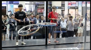 드론 격투기로 불리는 `드론 클래시` 행사에 출전한 선수들이 관객들이 지켜보는 가운데 드론 비행을 시연하고 있다. [이승환 기자]