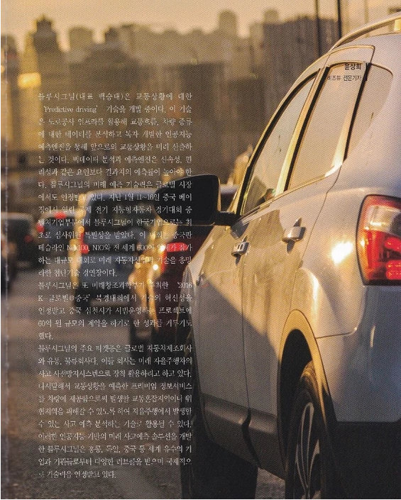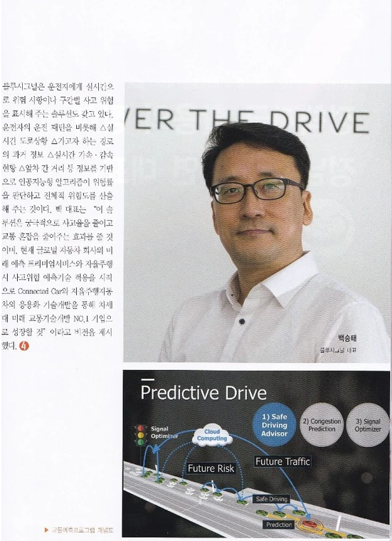 문성봉 비즈뷰 전문기자빅데이터와 인공지능을 융합, 교통흐름과 교통사고 예측 블루시그널(대표 백승태)은 2015년 6월에 출범한 “교통(Transportation)” 특화•전문 스타…